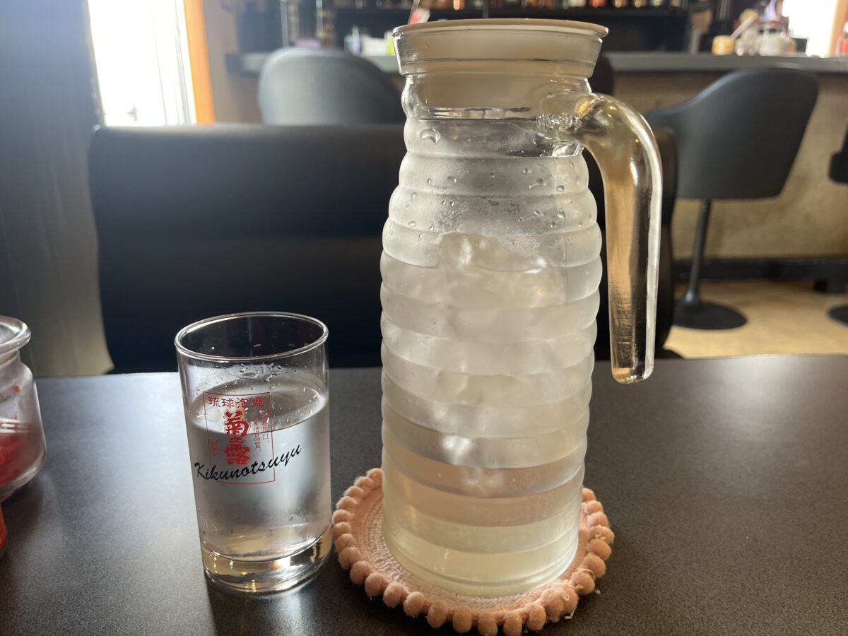 赤いヤツもピッチャーセットと一緒に運ばれてきました。沖縄そばを食べる準備万端です!