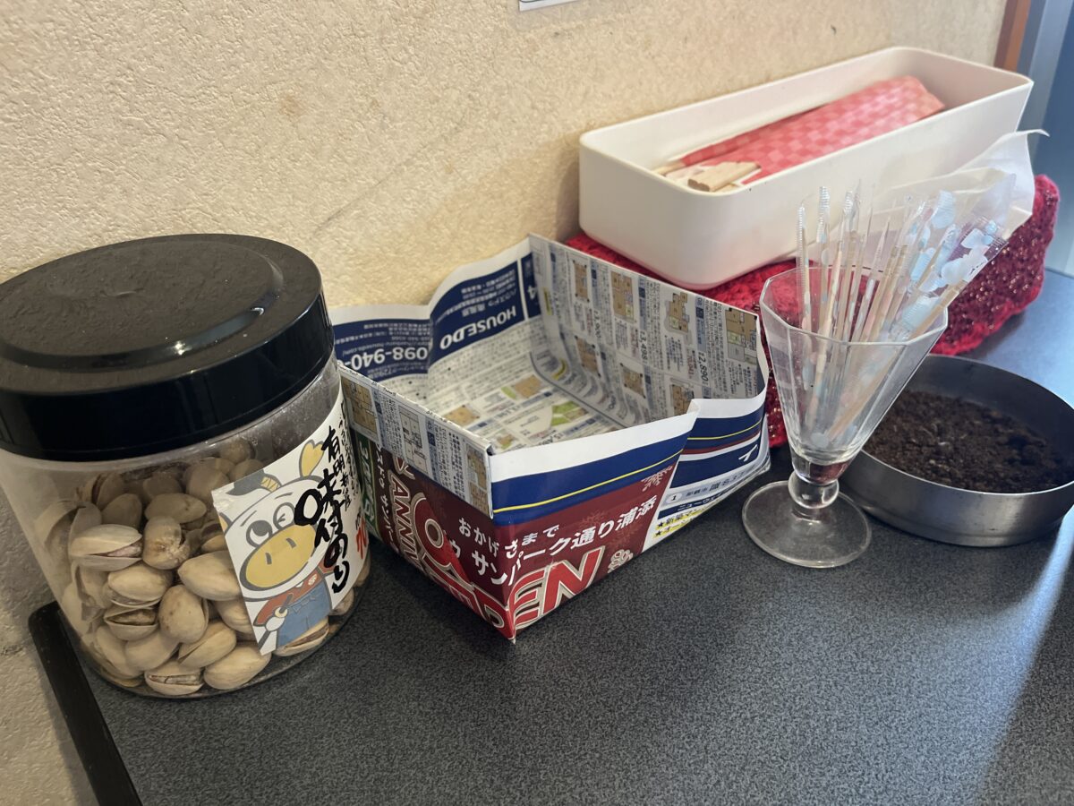 チラシで作ったゴミ箱!場末のスナック感100%ですね。完璧!