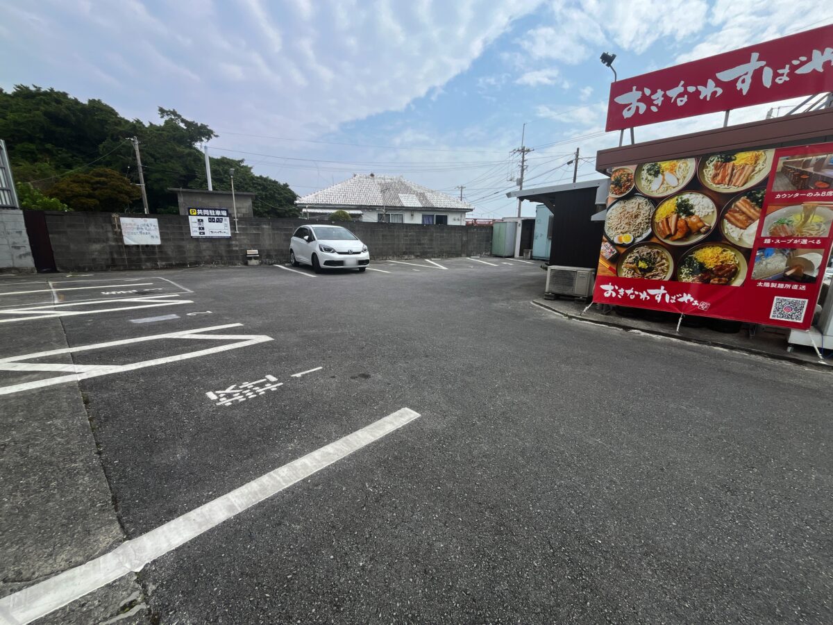 店舗の左側から入ると、奥が駐車場になっています。