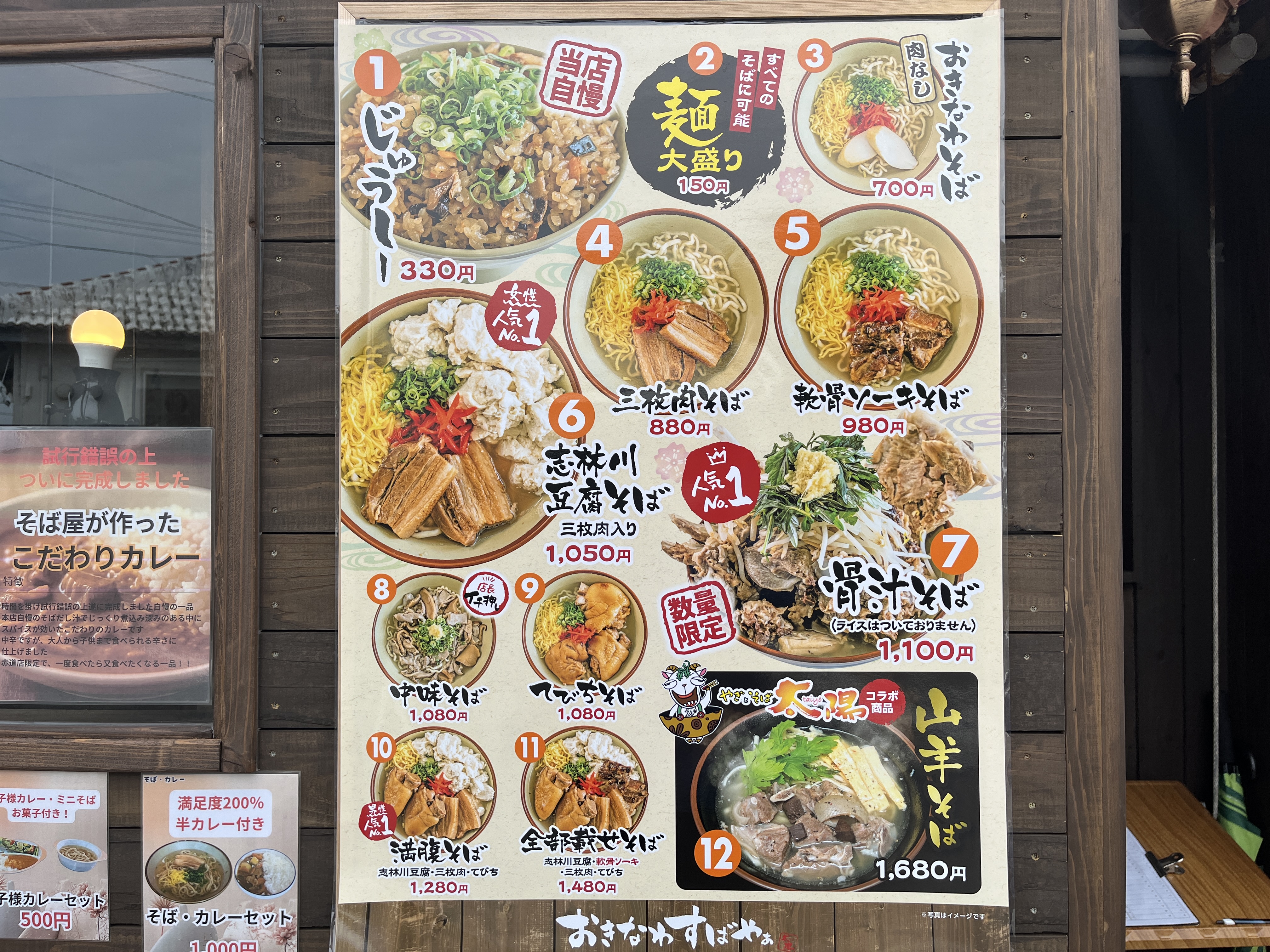 おきなわすばやぁはフランチャイズで、全店舗同じメニュー構成になっています。味も同じクオリティなので安心です。