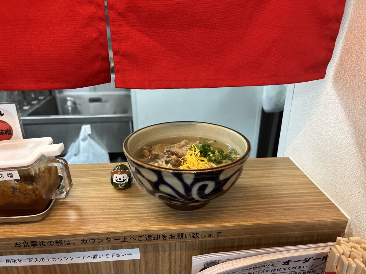 以前、みどり町店で志林川豆腐そば(三枚肉入り)を食べたので、今回は軟骨ソーキそばにしました!
