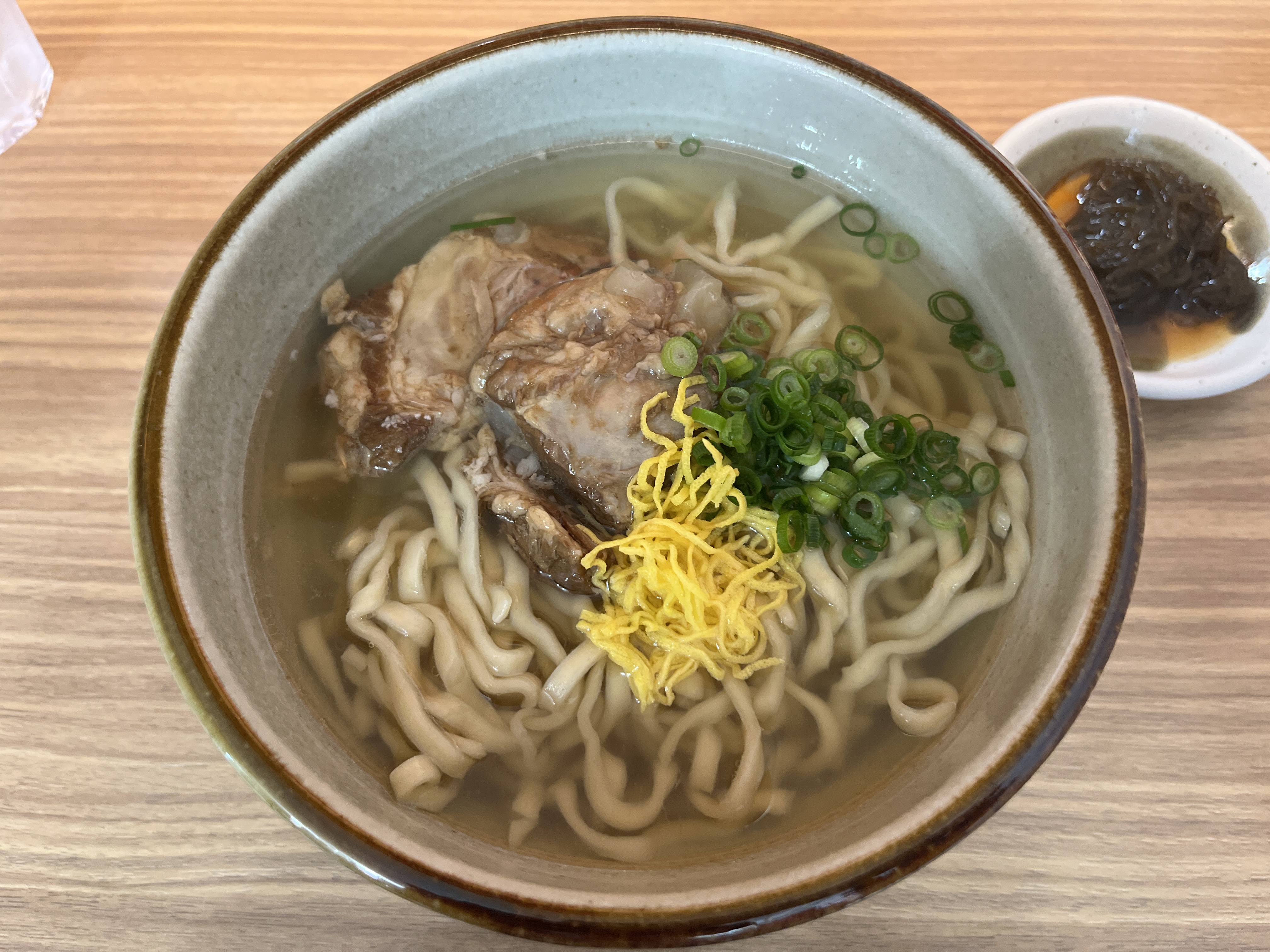 その軟骨ソーキですが、食感はかなり柔らかくて好きなタイプ。味はあっさりした塩味ですね。私は甘めの味が好きなので、三枚肉の方が好みですね。