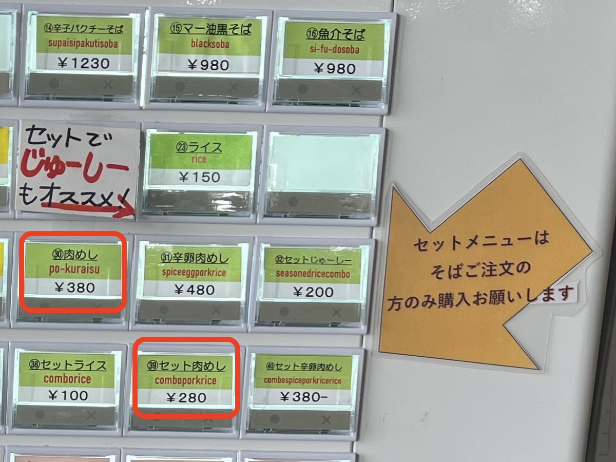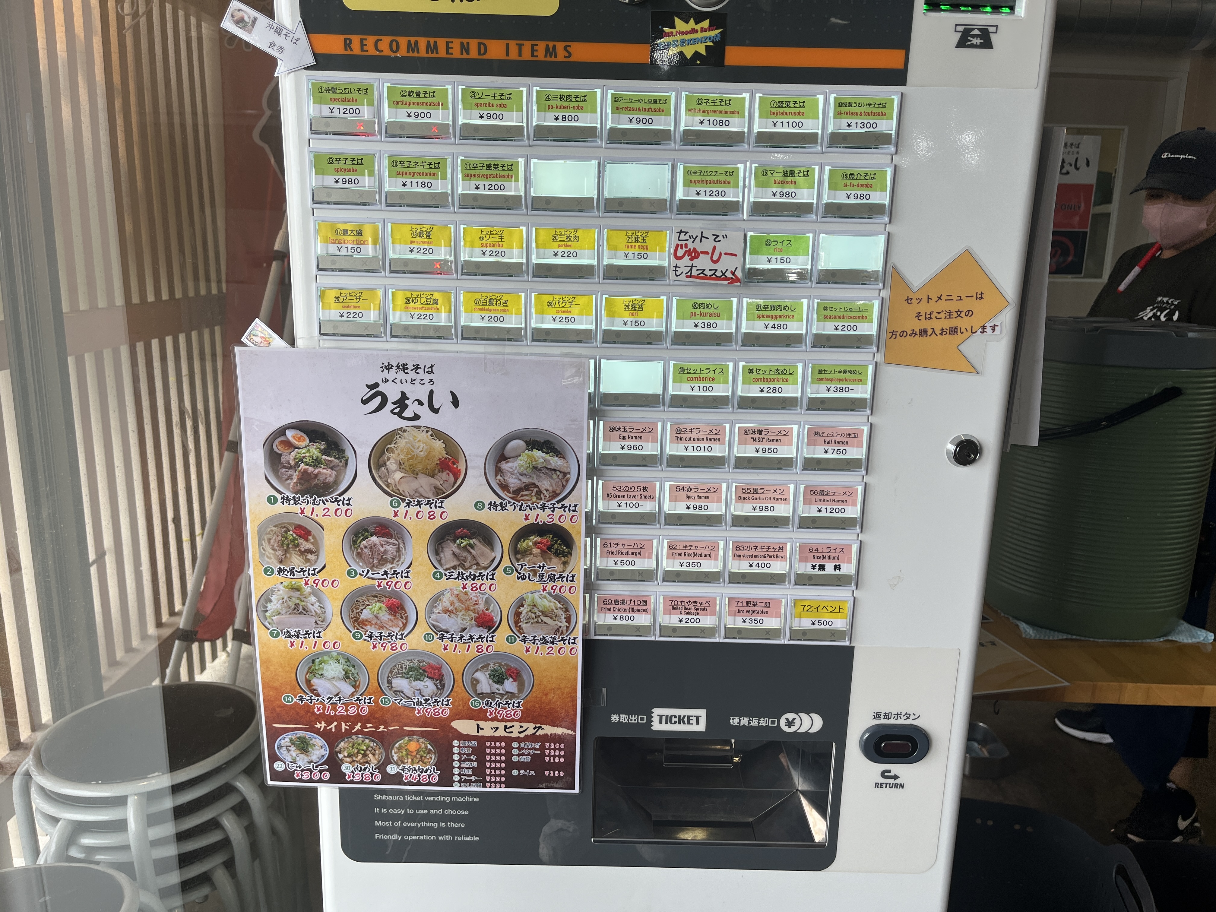 食券機は、上半分が沖縄そば、下半分がラーメンのメニューになっています。