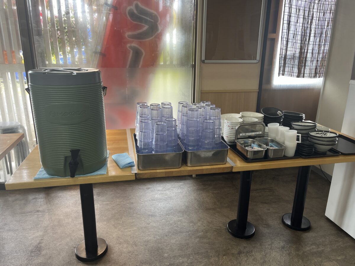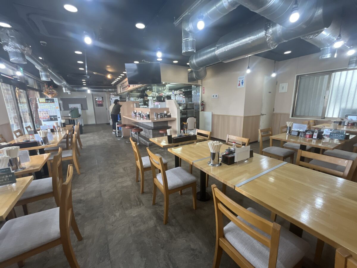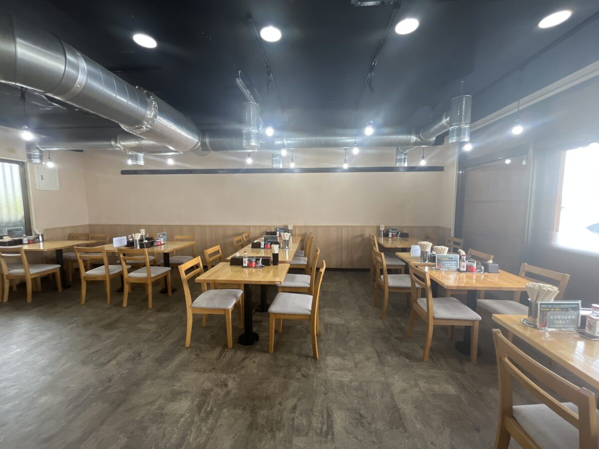 ちょっと気になったのが、天井のダクト!これ、焼肉屋でよく見かけるやつですよね? もしかして、夜は焼肉も提供しているのか?とか思いましたが、いや、夜はラーメン屋だし!