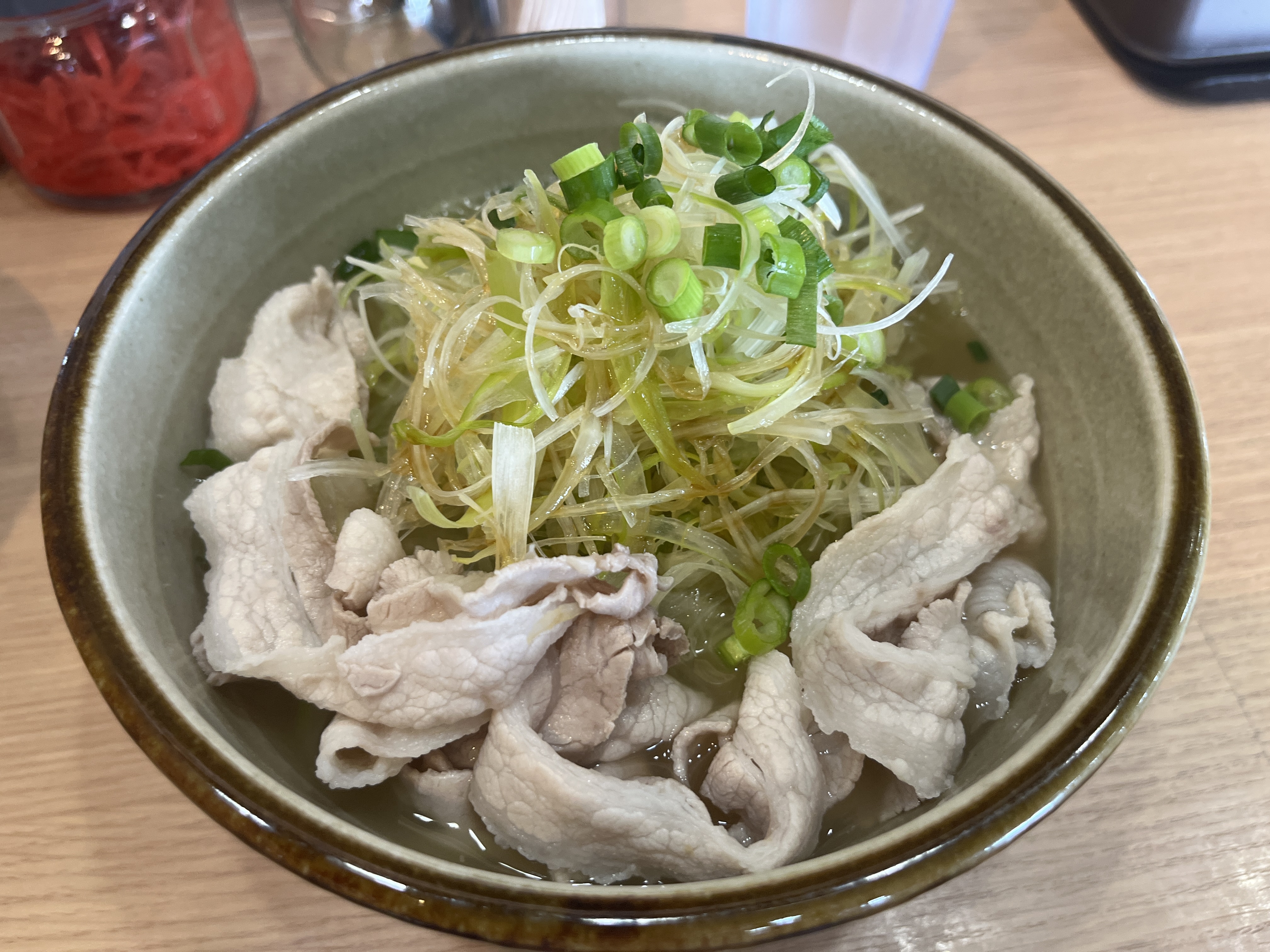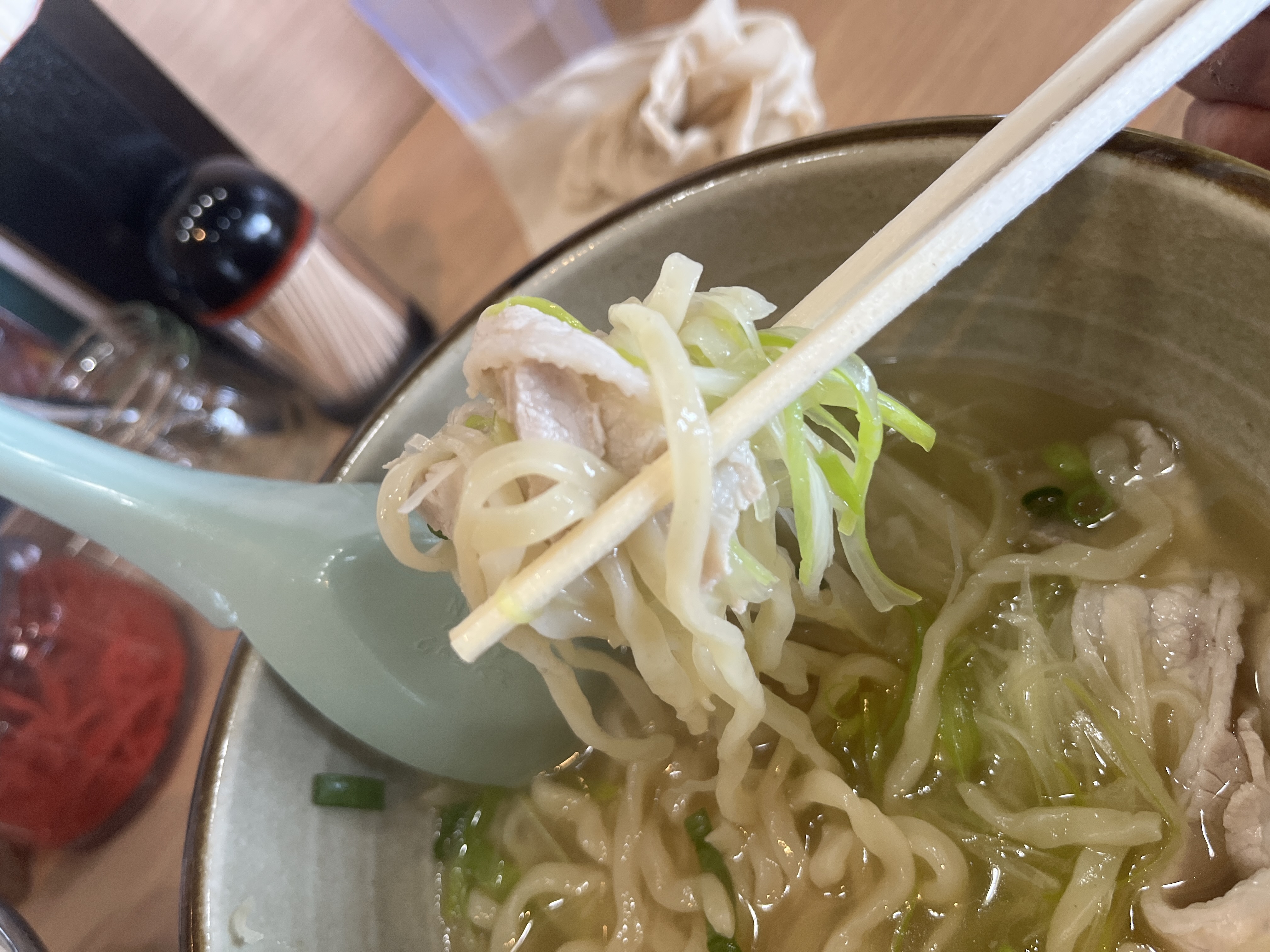 プリップリの生麺はツルッと軽い食感で、豚しゃぶのような食べ方とも相性抜群。スープもあっさりしていて、このネギそばにしっかりマッチしています。
