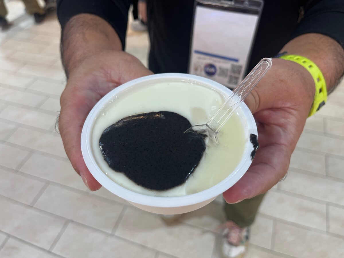 「買って、ここで食べたい」と言ったら、店員のおばちゃんが開封して、黒ゴマクリームをかけてくれました!