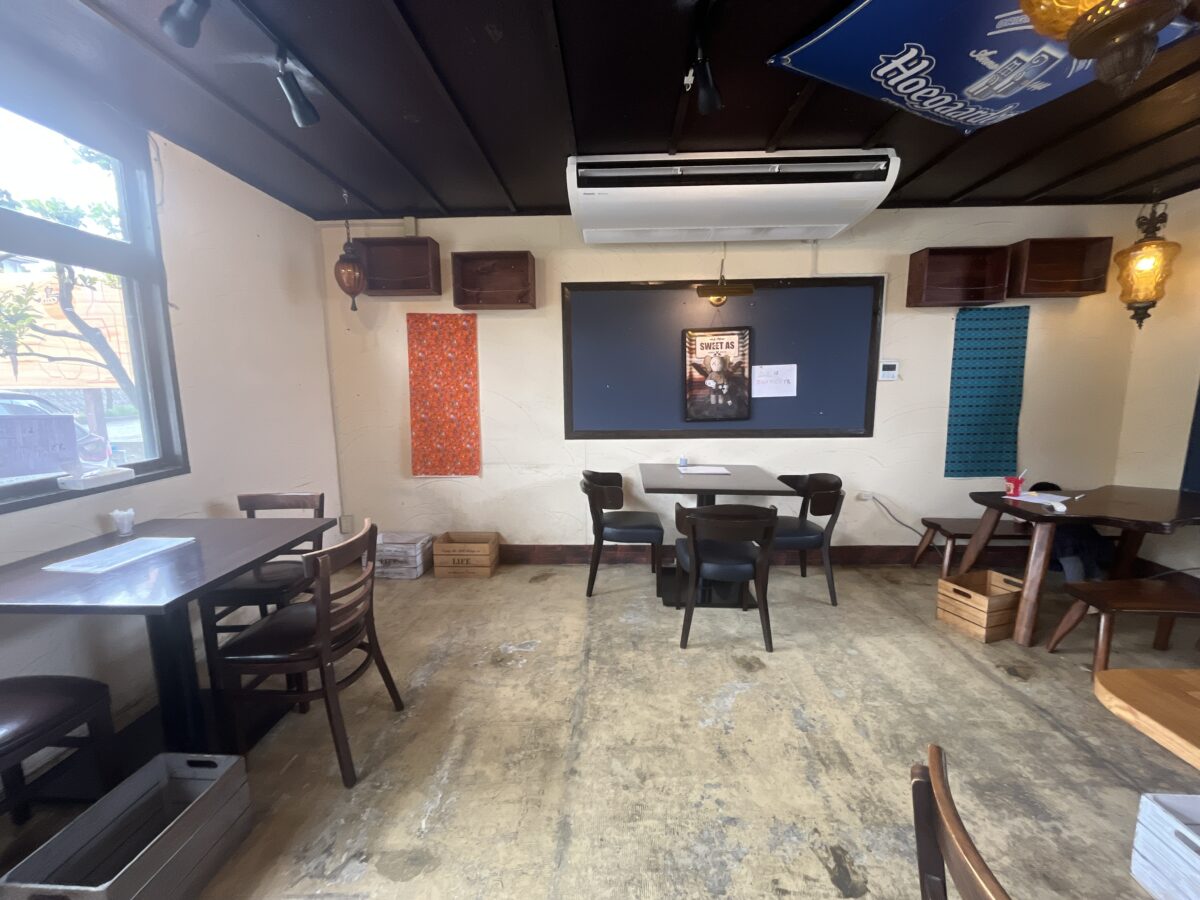 店舗前が駐車スペースになっており、4台ほど駐車可能です。そして看板は、前述の通り「Tui」となっています。