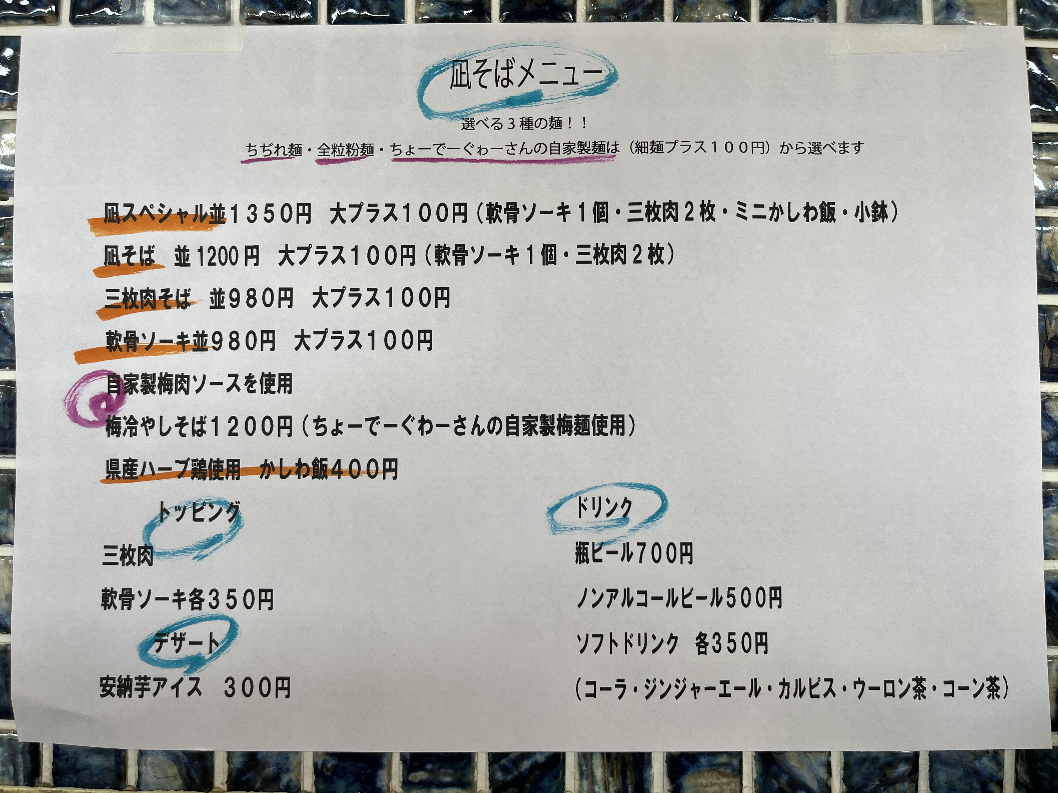 ひとつ気になったのは、沖縄そば屋の定番である七味やコーレーグースなどの調味料が一切置かれていないこと。スープがかなりあっさりしているので、こってり好きの人には少し物足りないかもしれません。