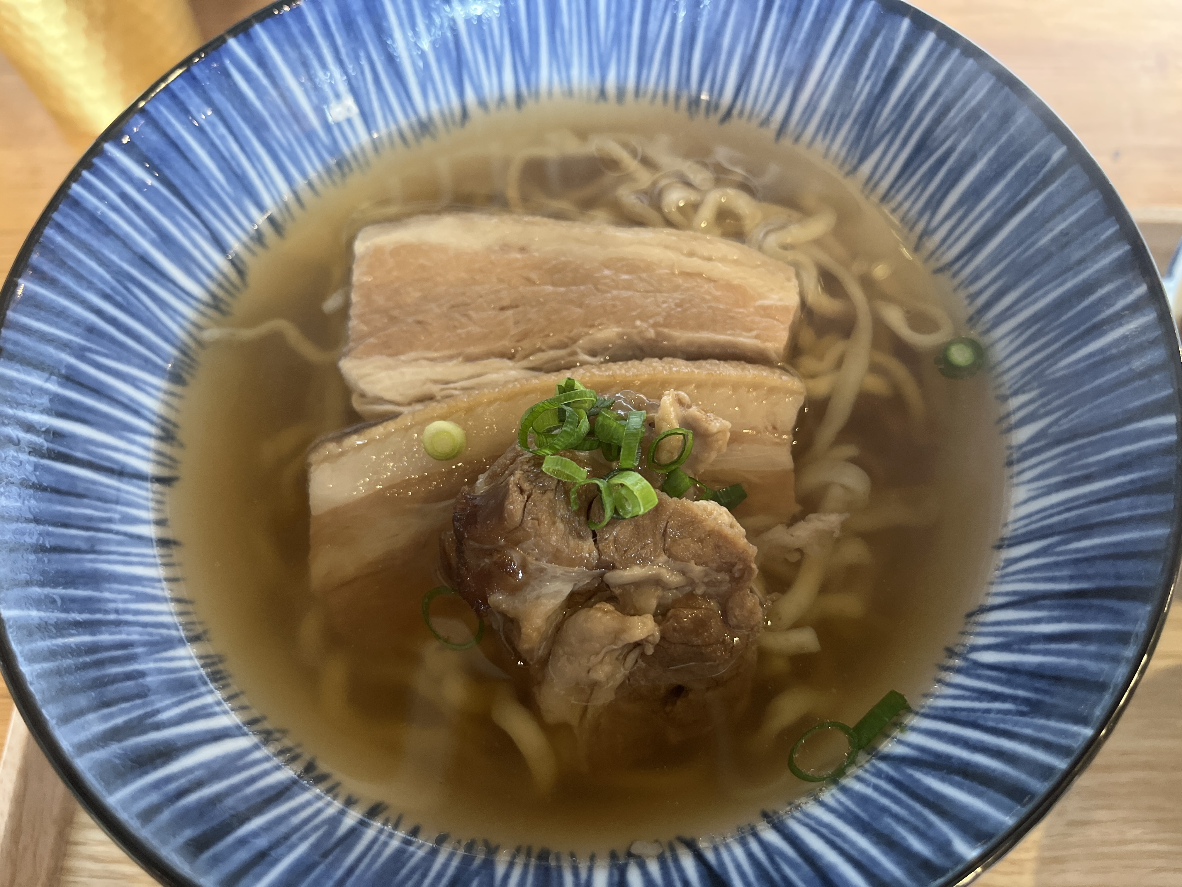そしてスープはすっきり透明。鰹と鶏のダブルスープとのこと。かなりあっさり味。私はあっさり派なので好きだけど、こってり派の人には少し物足りないかも。コクはやや控えめに感じるかもしれない。