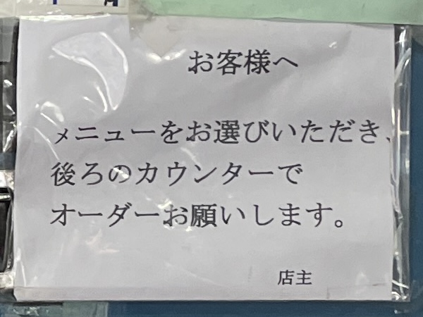 「メニューをお選びいただき、後ろのカウンターでオーダーお願いします。」