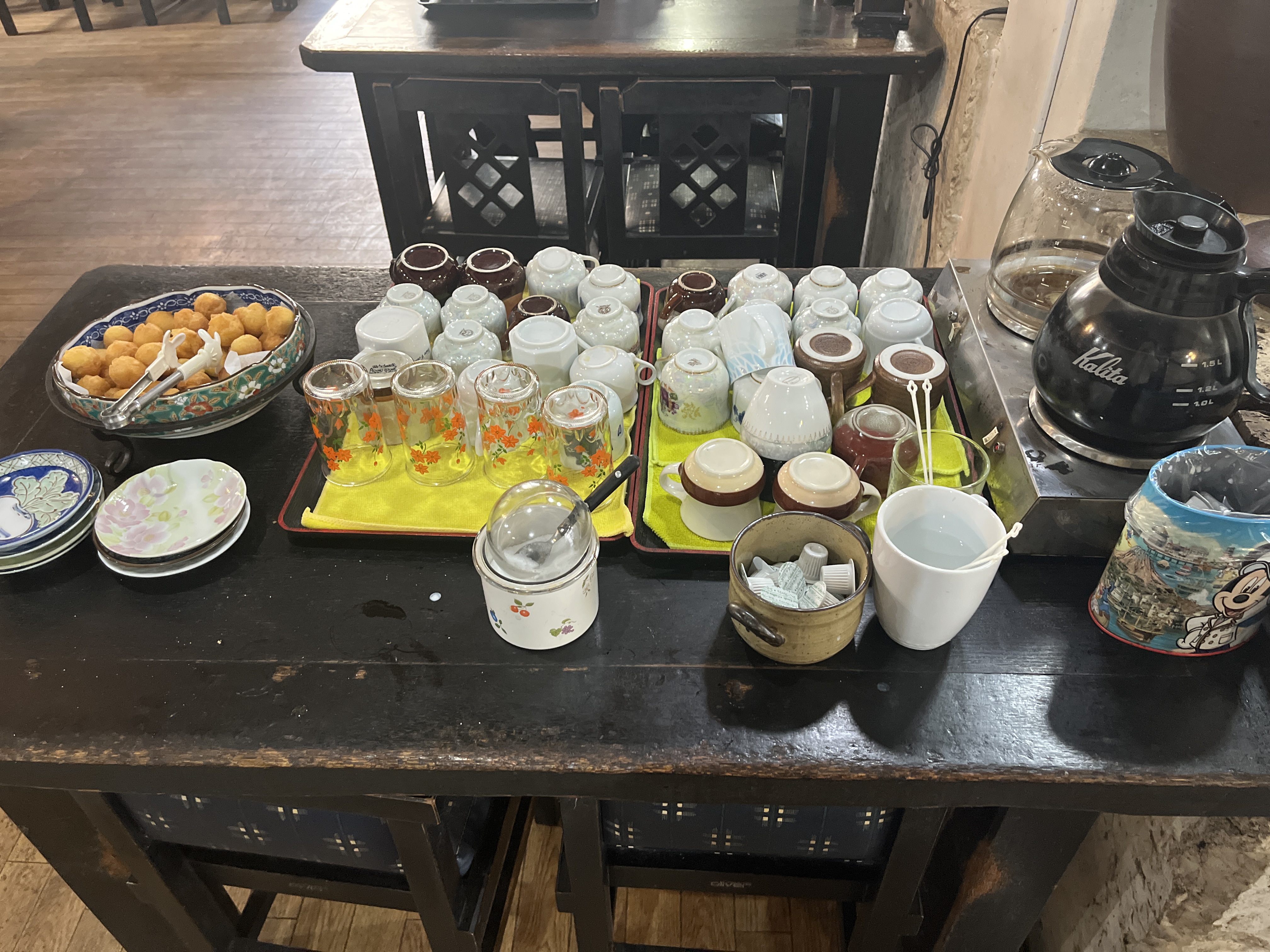 定食にサーターアンダギーが付いていたり、食後にサービスで出てくることはありますが、まさかのセルフサービスで取り放題は初めて見ました!