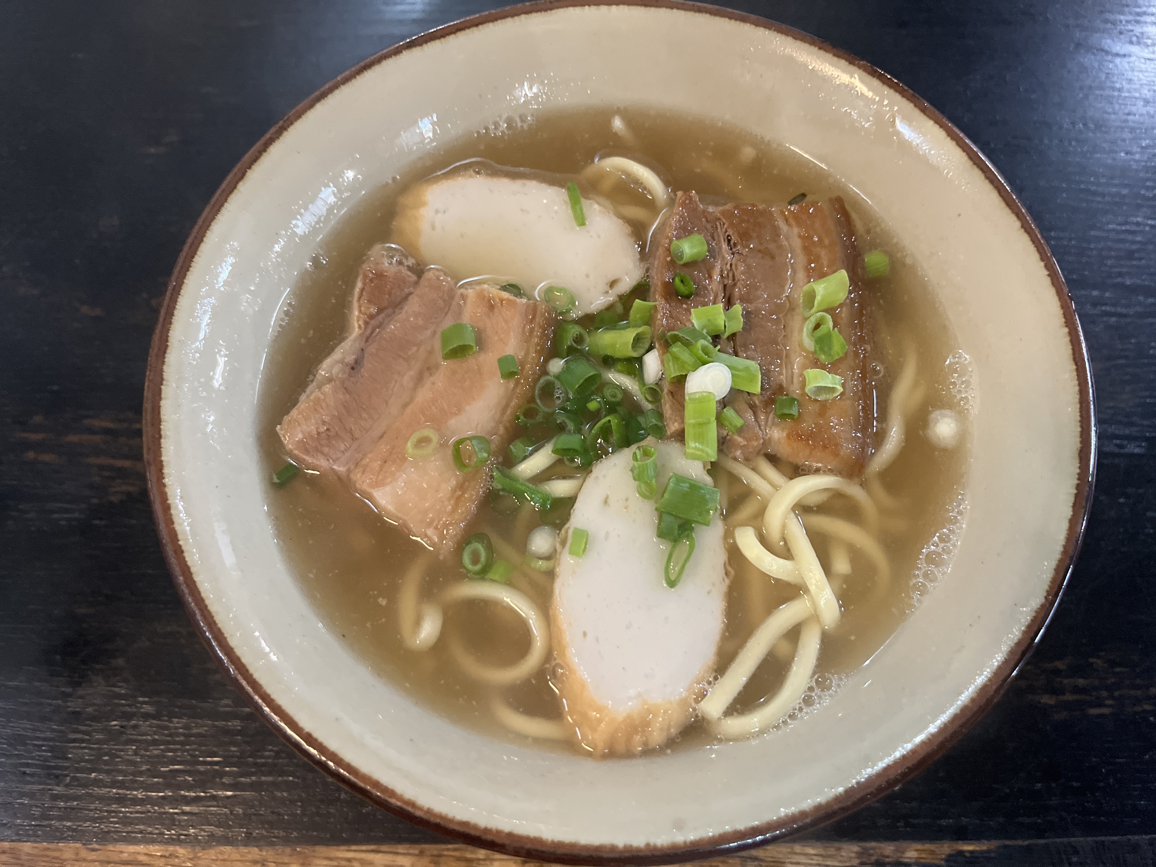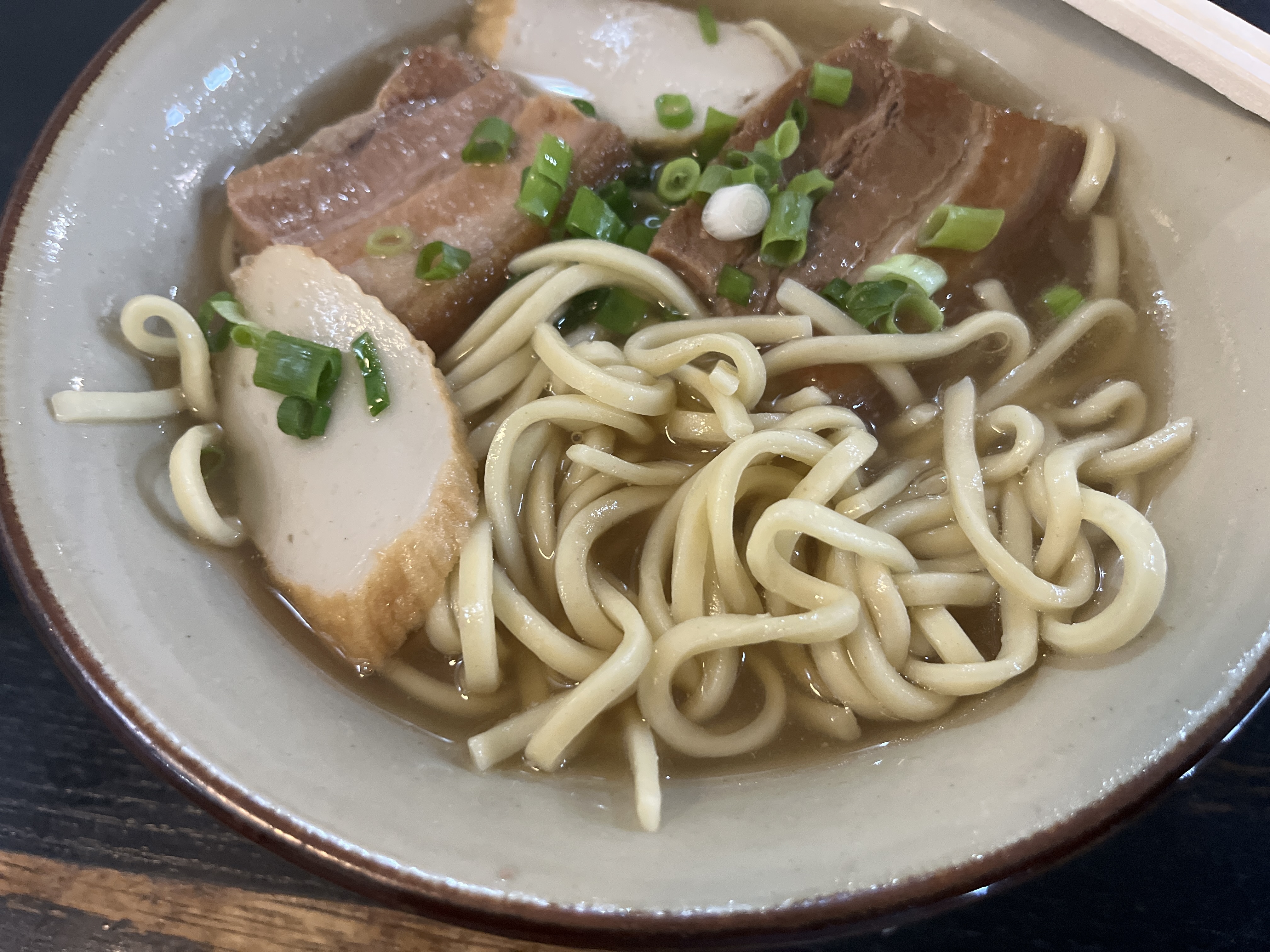 改めて「浦添そば」ですが、麺は丸麺っぽい細麺。ちょっと珍しいタイプで、ストレートなので、すすり心地も良く食べやすいですね。