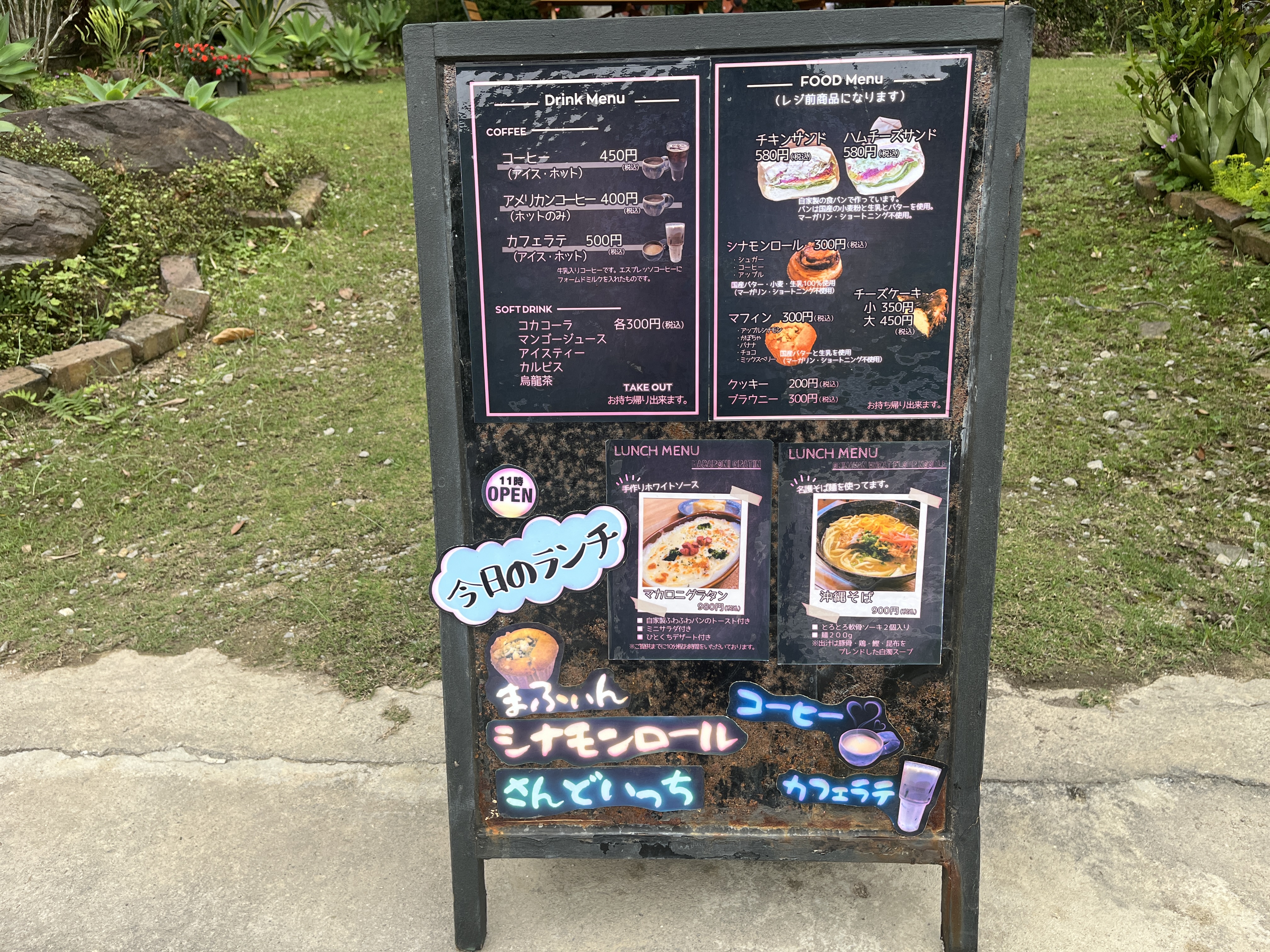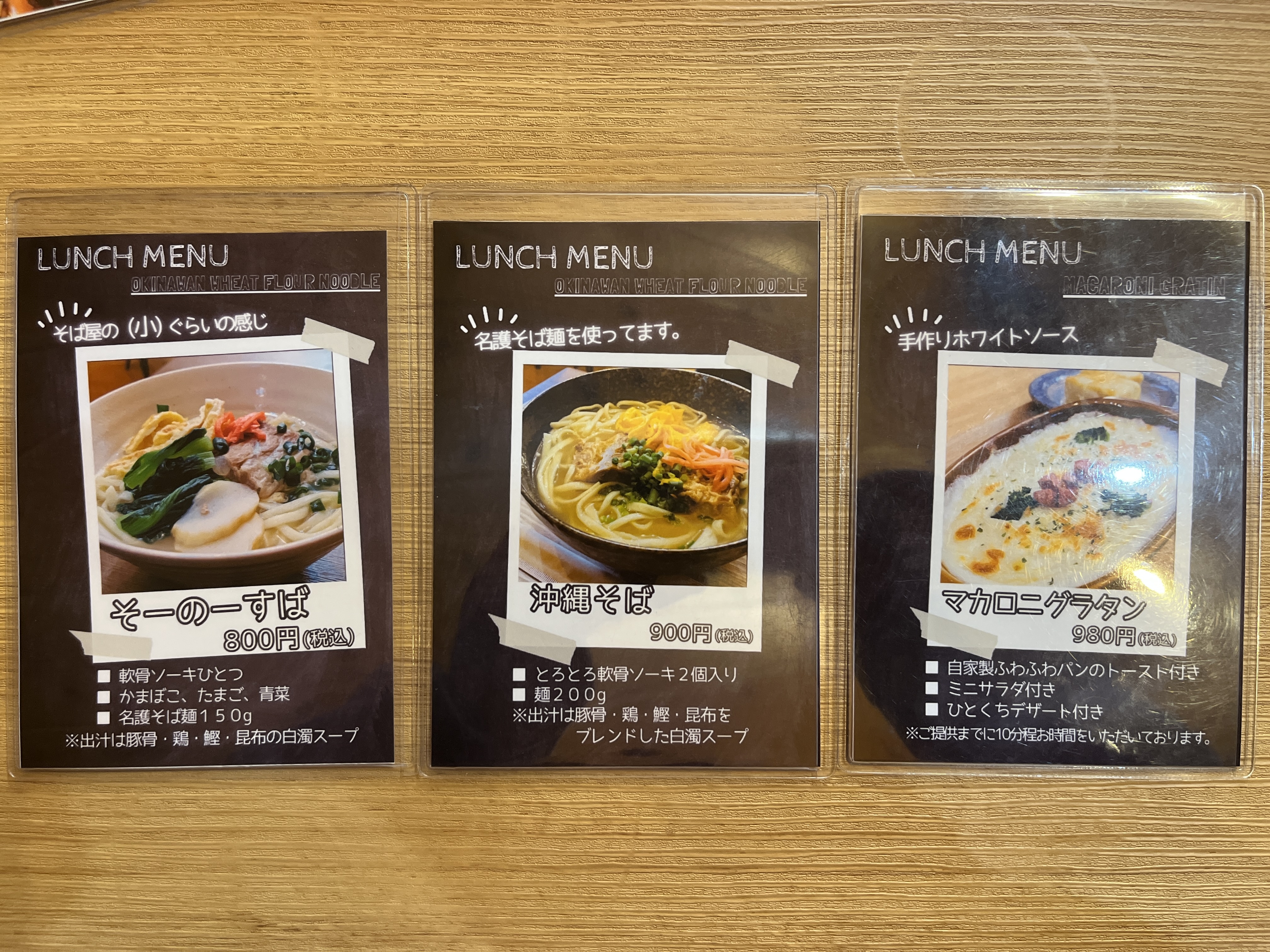 さて、何食べたい?沖縄そばが人気あるみたいだけど、グラタンもいいよねぇ〜!まさに究極の二択。私があと30歳若かったら、両方いっちゃうんですけどね!