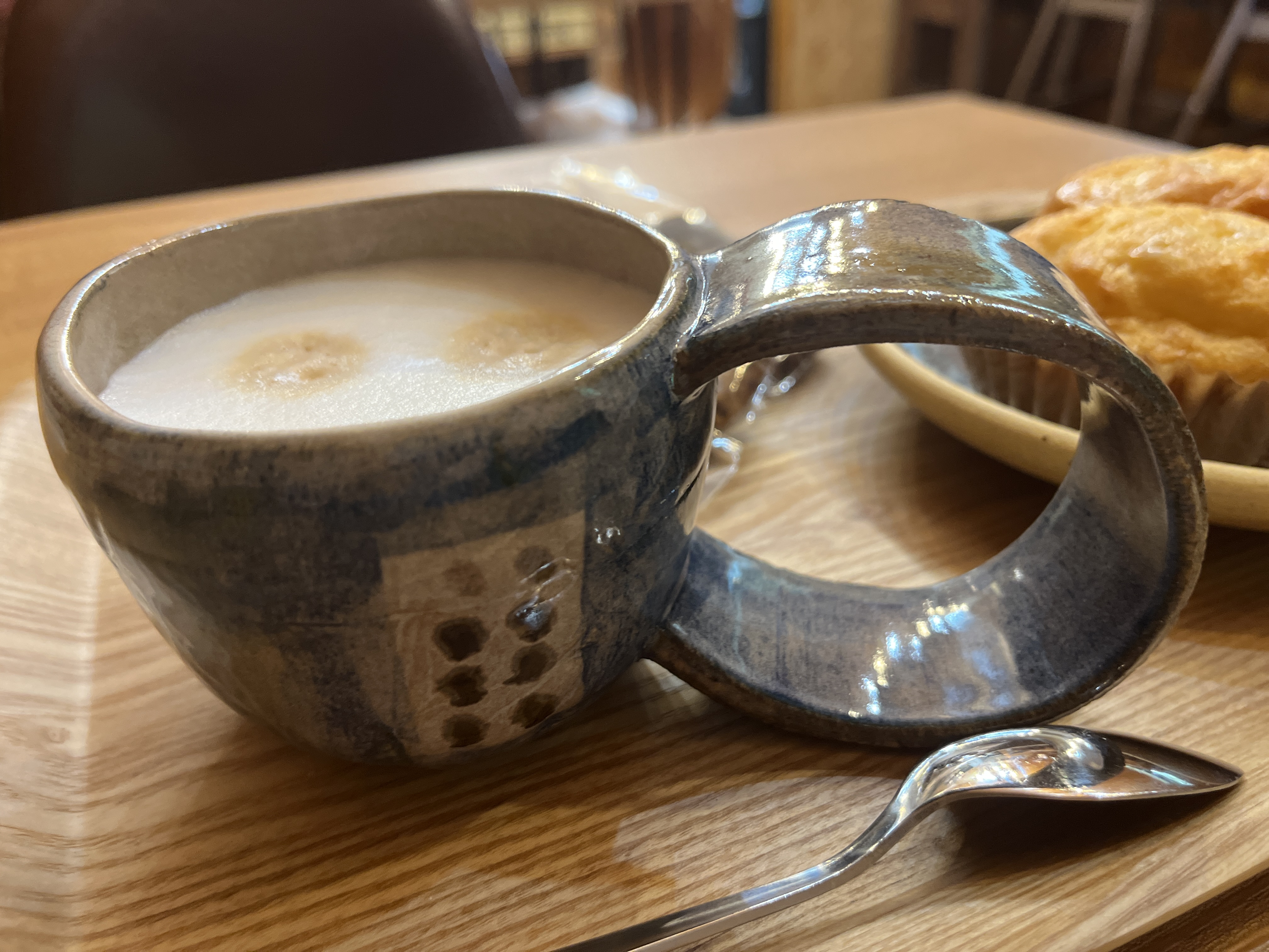 そして、すごく良かったのは食べやすさ。この形がすごく良いですね。ちぎって食べやすい。そしてカフェラテも合う!ホットにして正解だった!