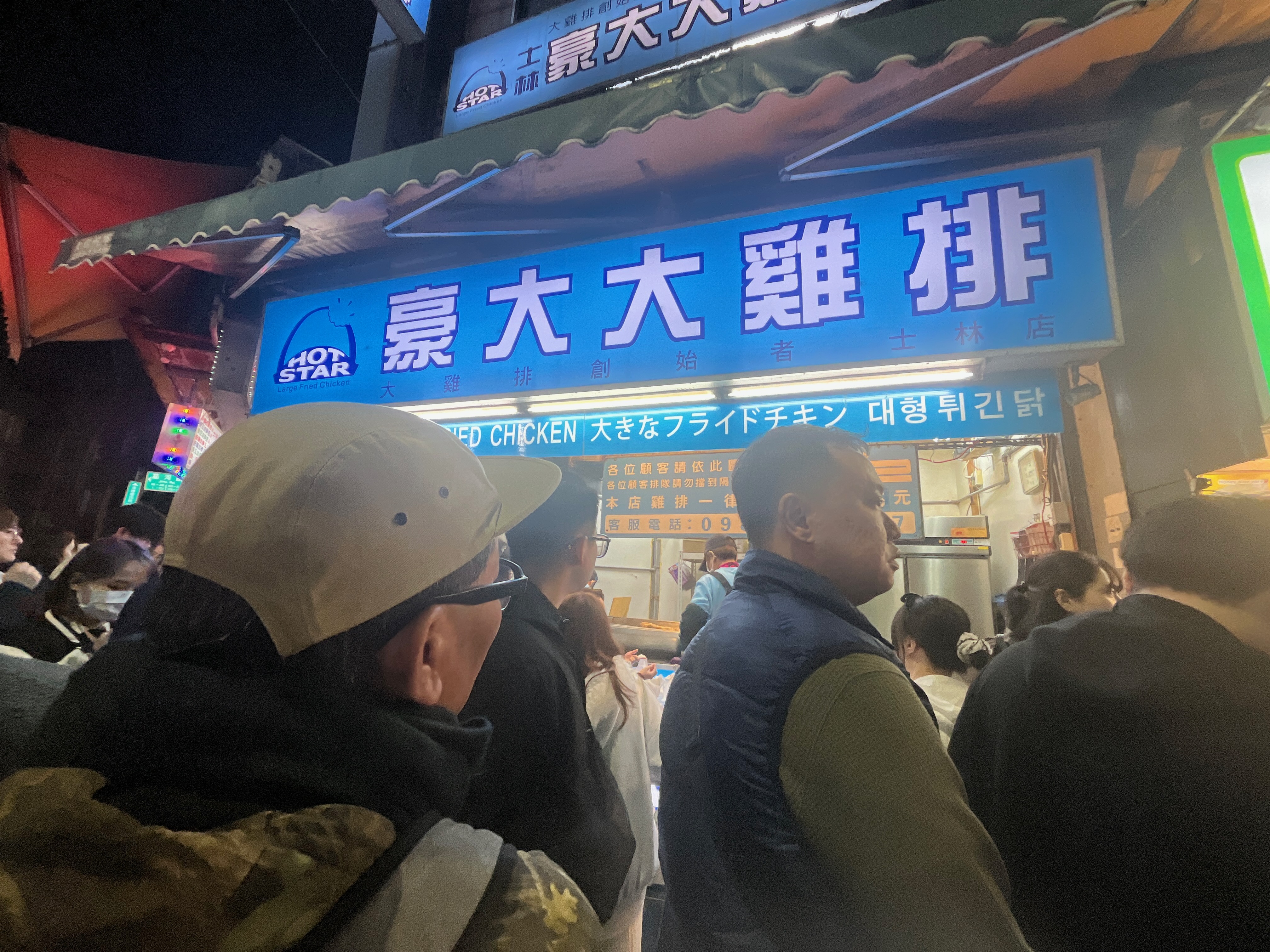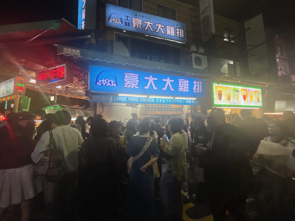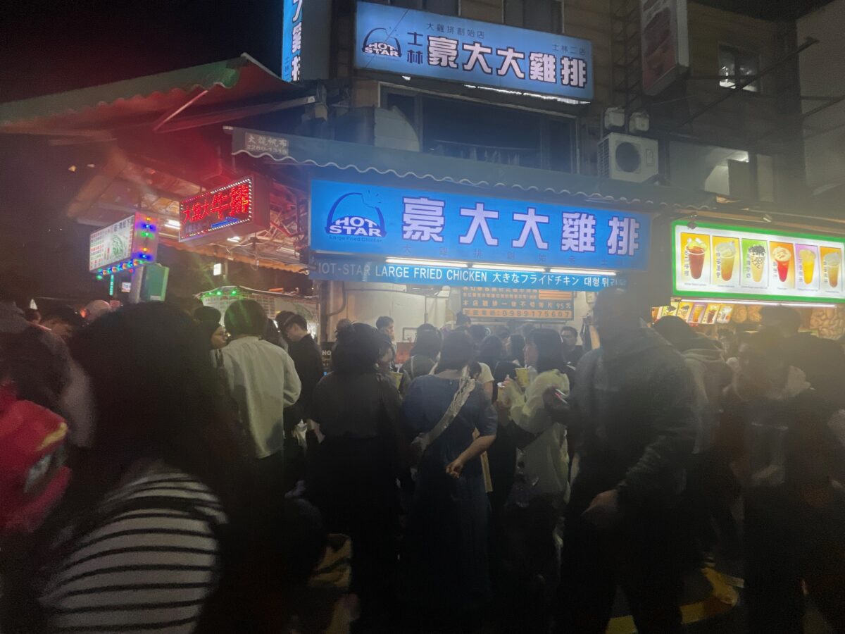 士林夜市の入口付近に超有名店の「豪大大鶏排」があるので、とりあえず並んじゃいます!それにしてもすごい行列!