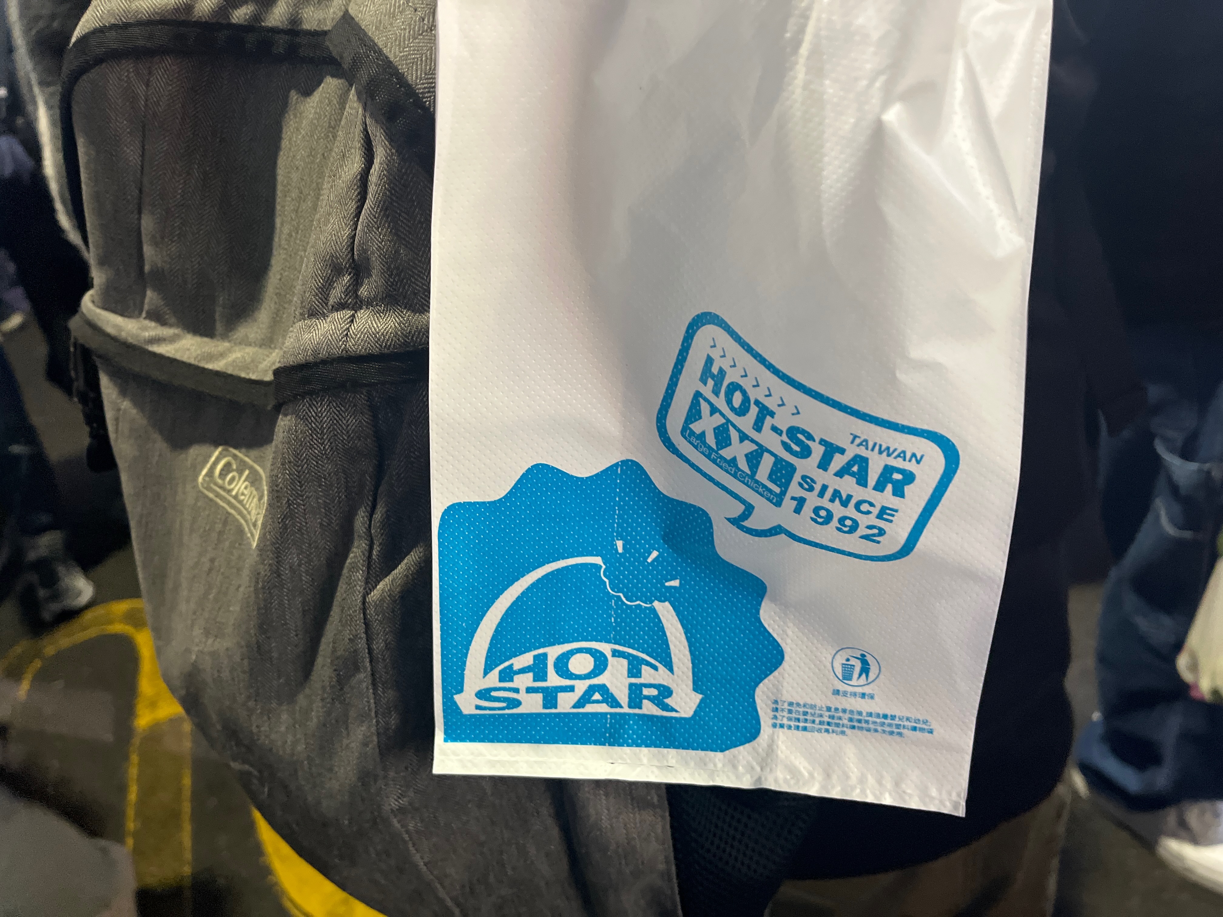 そして最初にもらった袋を広げて待ちます!すると店員さんが袋の中に鶏排を入れてくれます!そして、すみやかに列を離れる。