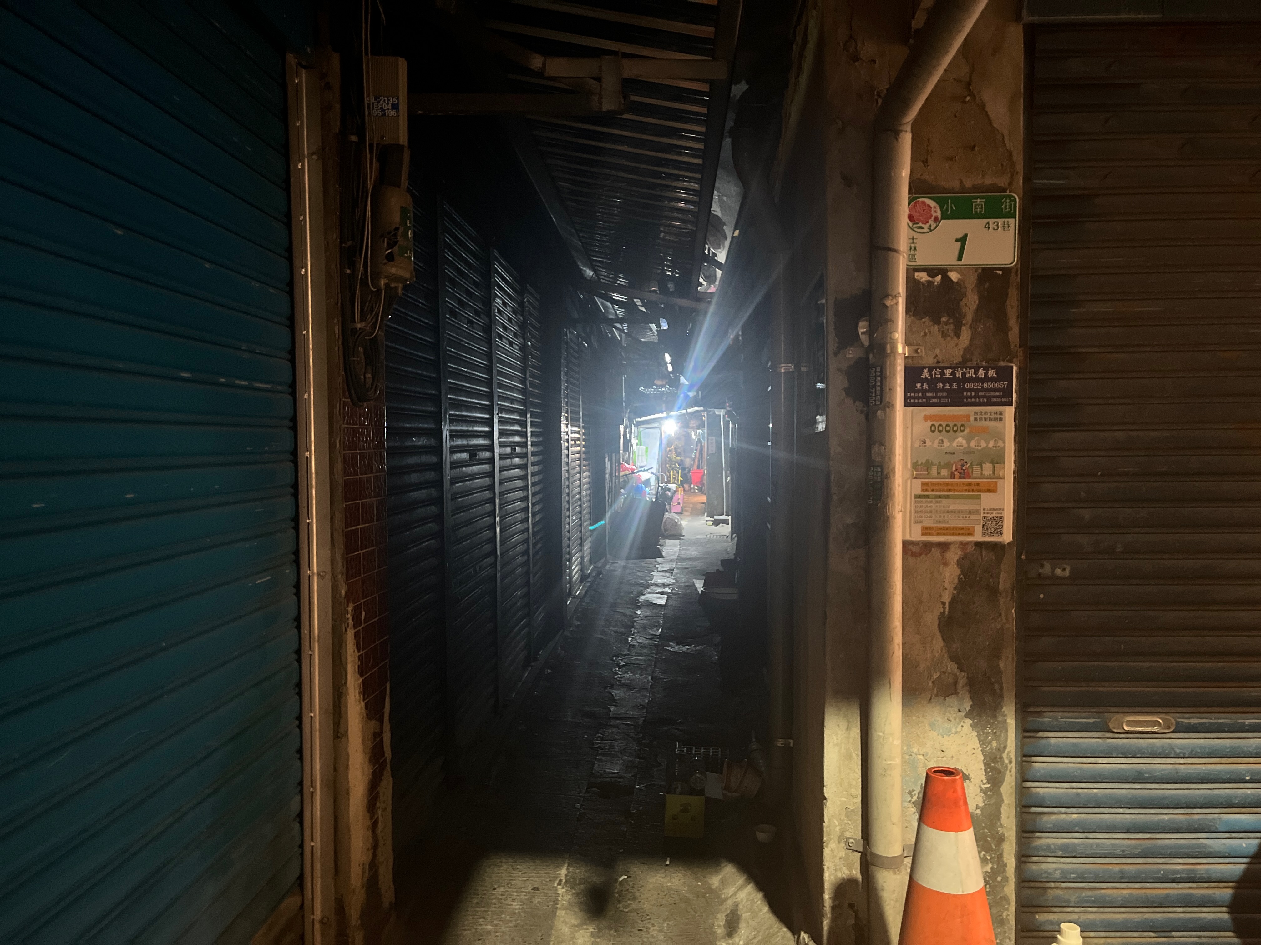 次の目的地に行くには、この道を通ります。牧志の裏通りっぽい雰囲気で、ちょっと怪しい感じ。