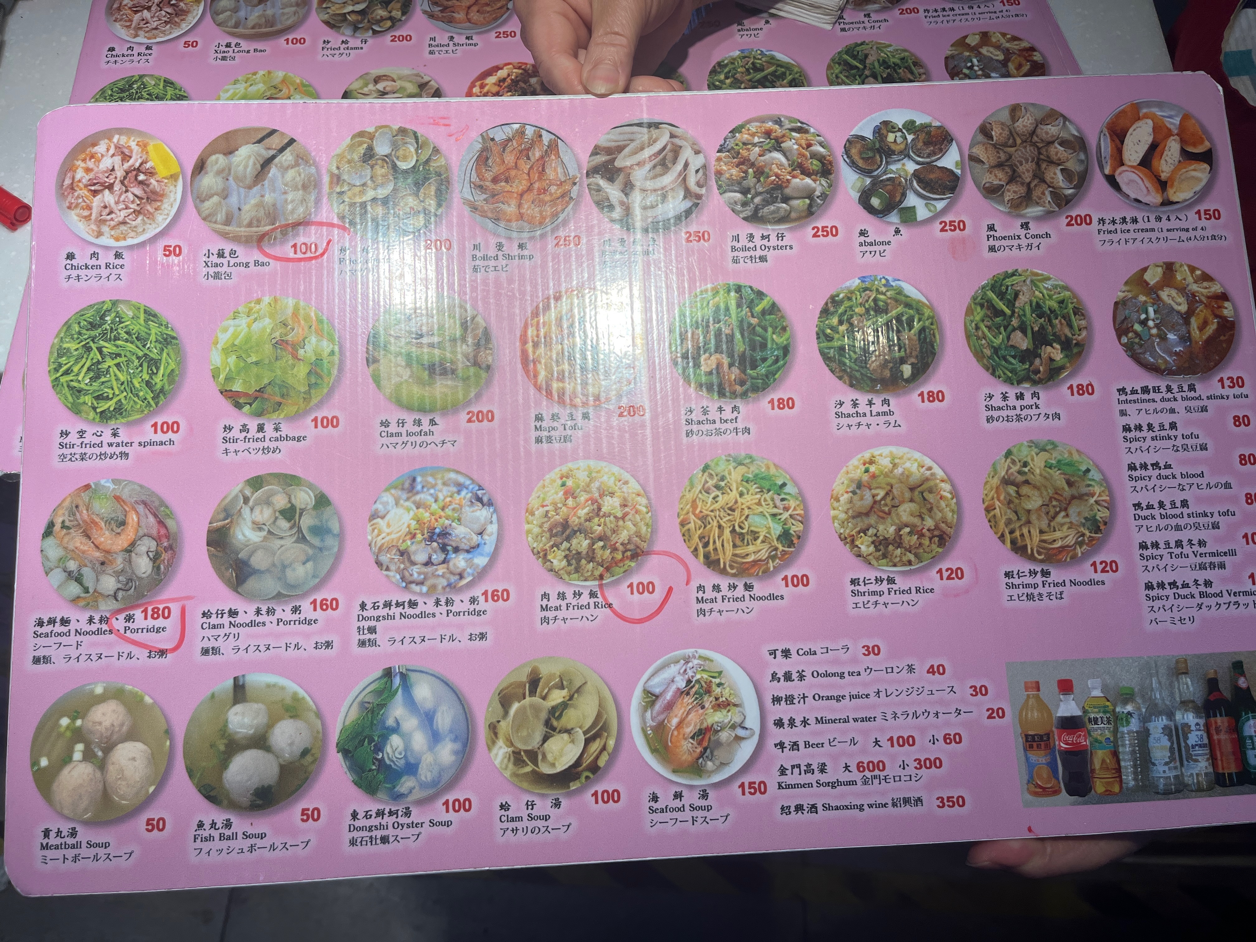 注文スタイルが独特。メニューを差し出されて、「どれがいい?」「これ美味しいよ!」と一気に畳みかけられ、そのままマッキーで赤丸。おばちゃんの押しが強い!