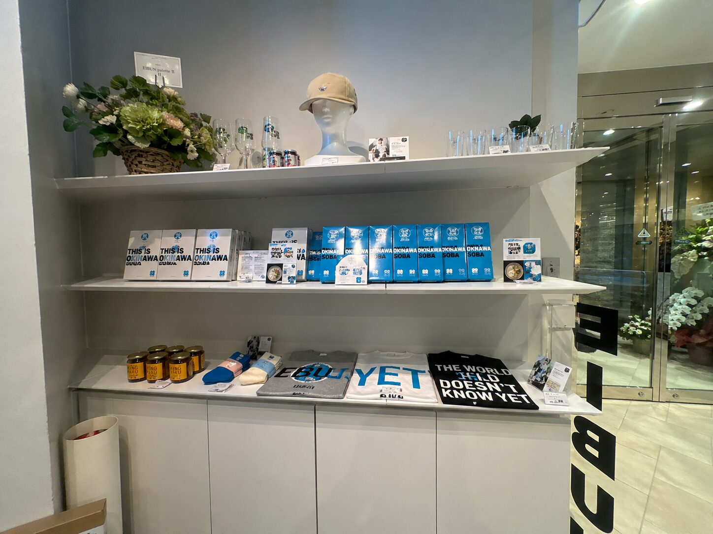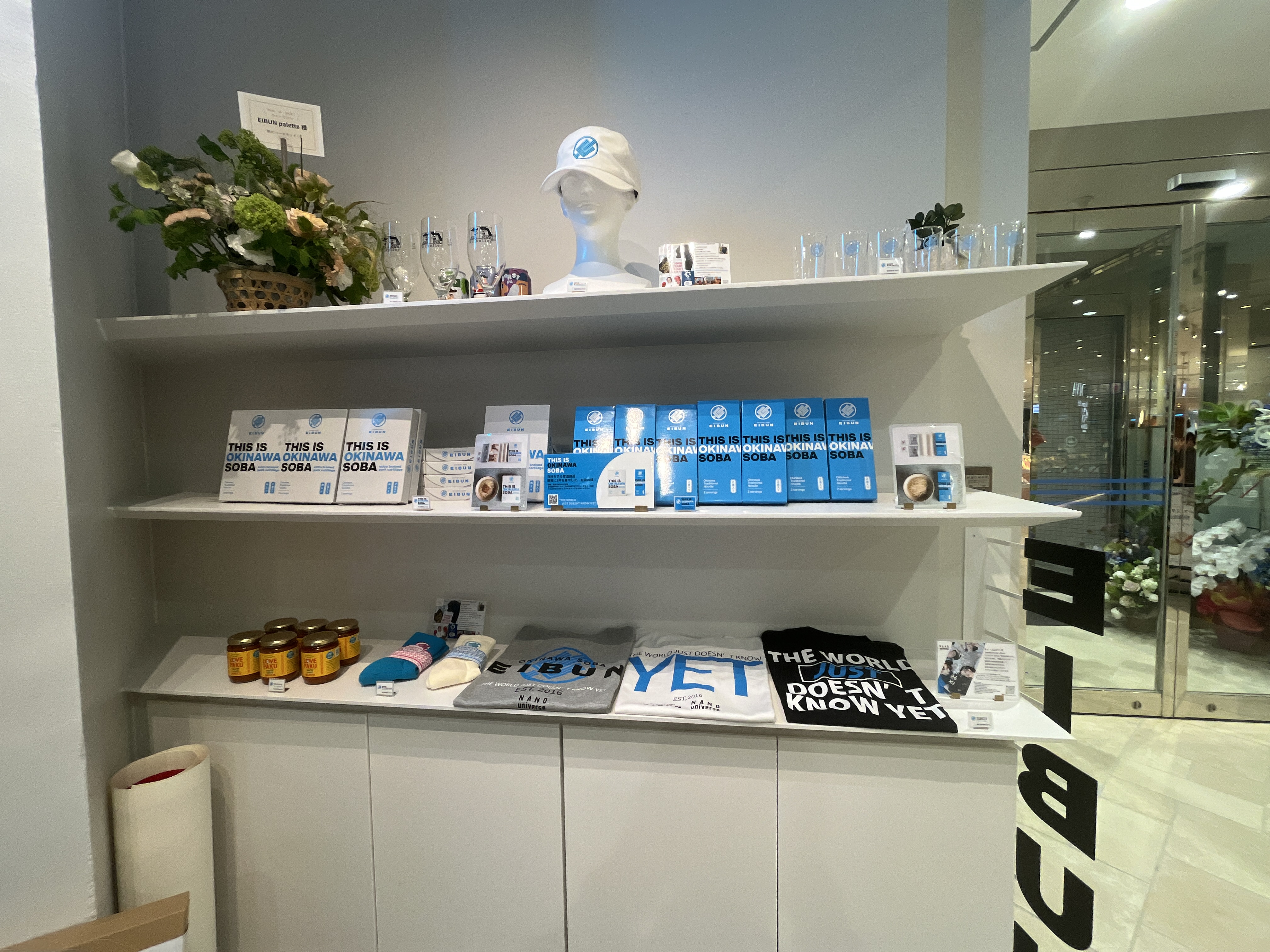 EIBUNの沖縄そばだけじゃなく、グラスにキャップ、Tシャツ、靴下まで展開!もうなんかスゴイことになってる。