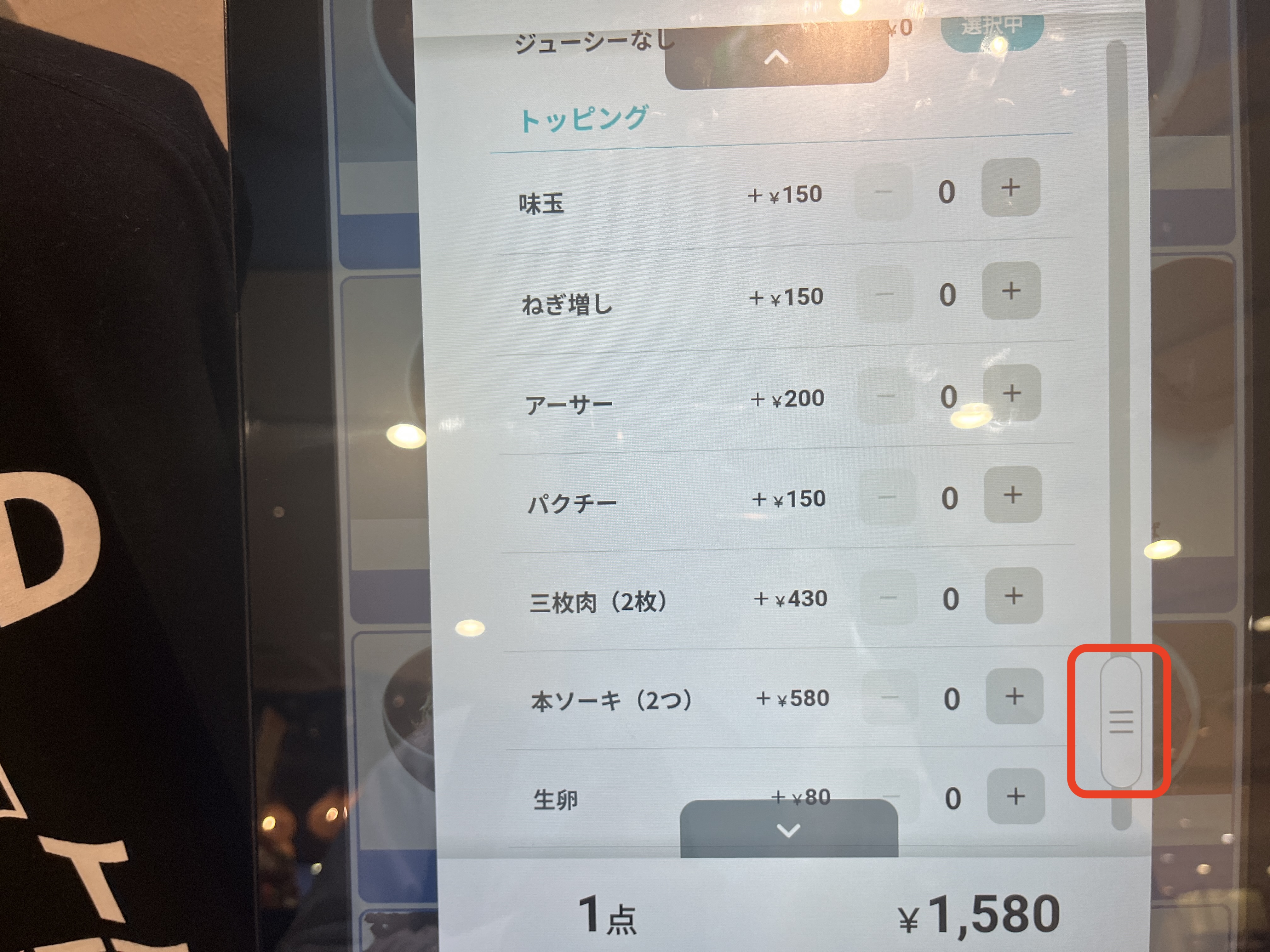 右側にスクロールバーがあって、スワイプすると下へ進んでいきます。うまく伝わるかな?