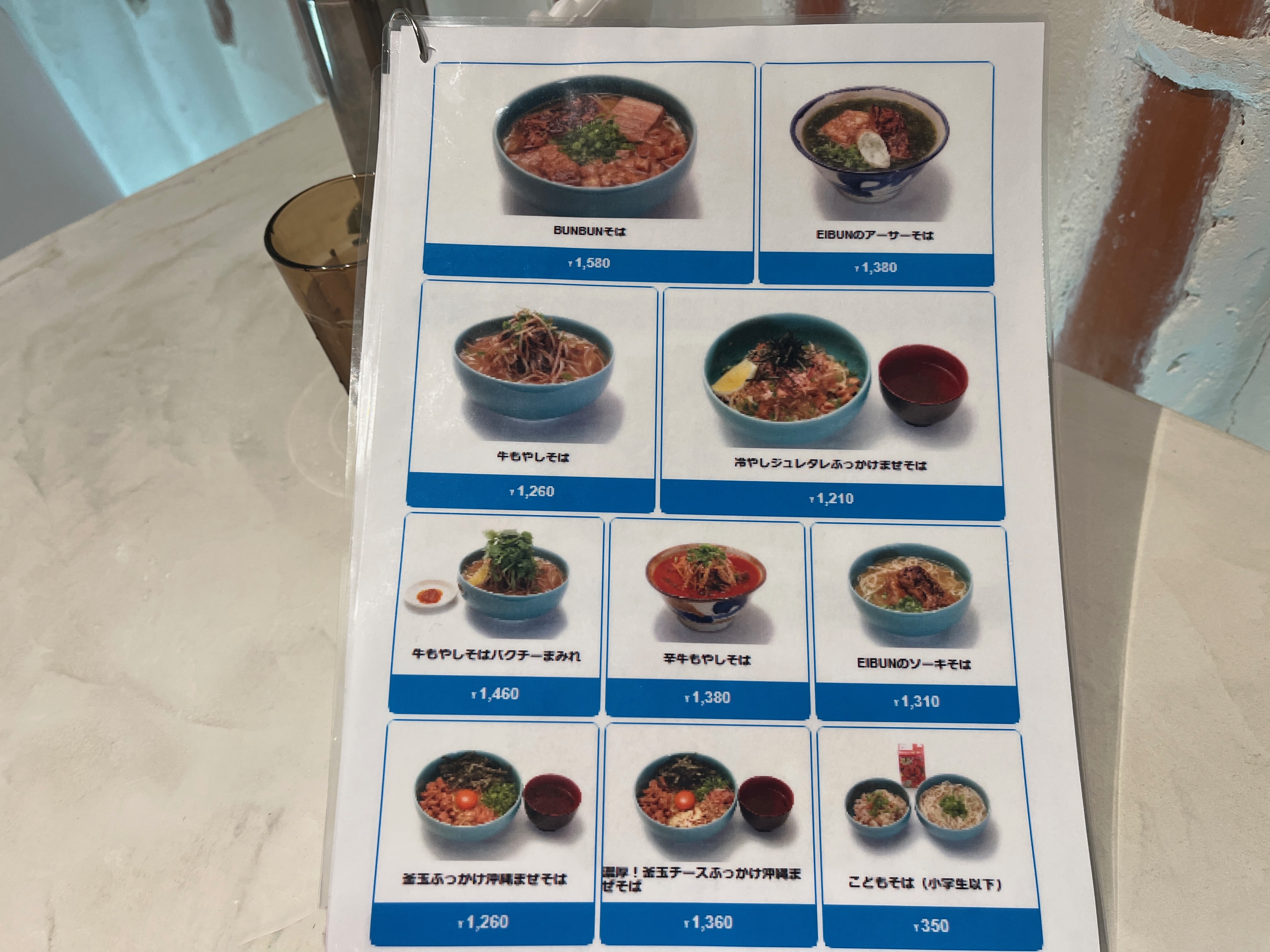 看板メニューのBUNBUNそばやアーサそば、ソーキそばなど、基本的には本店と同じラインナップです。