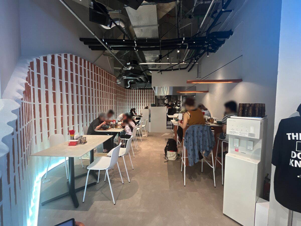 細長い店内でテーブル席のみ。入口付近は4名用、奥は2名用テーブルになっていて、ぼっちでも入りやすい雰囲気でした。
